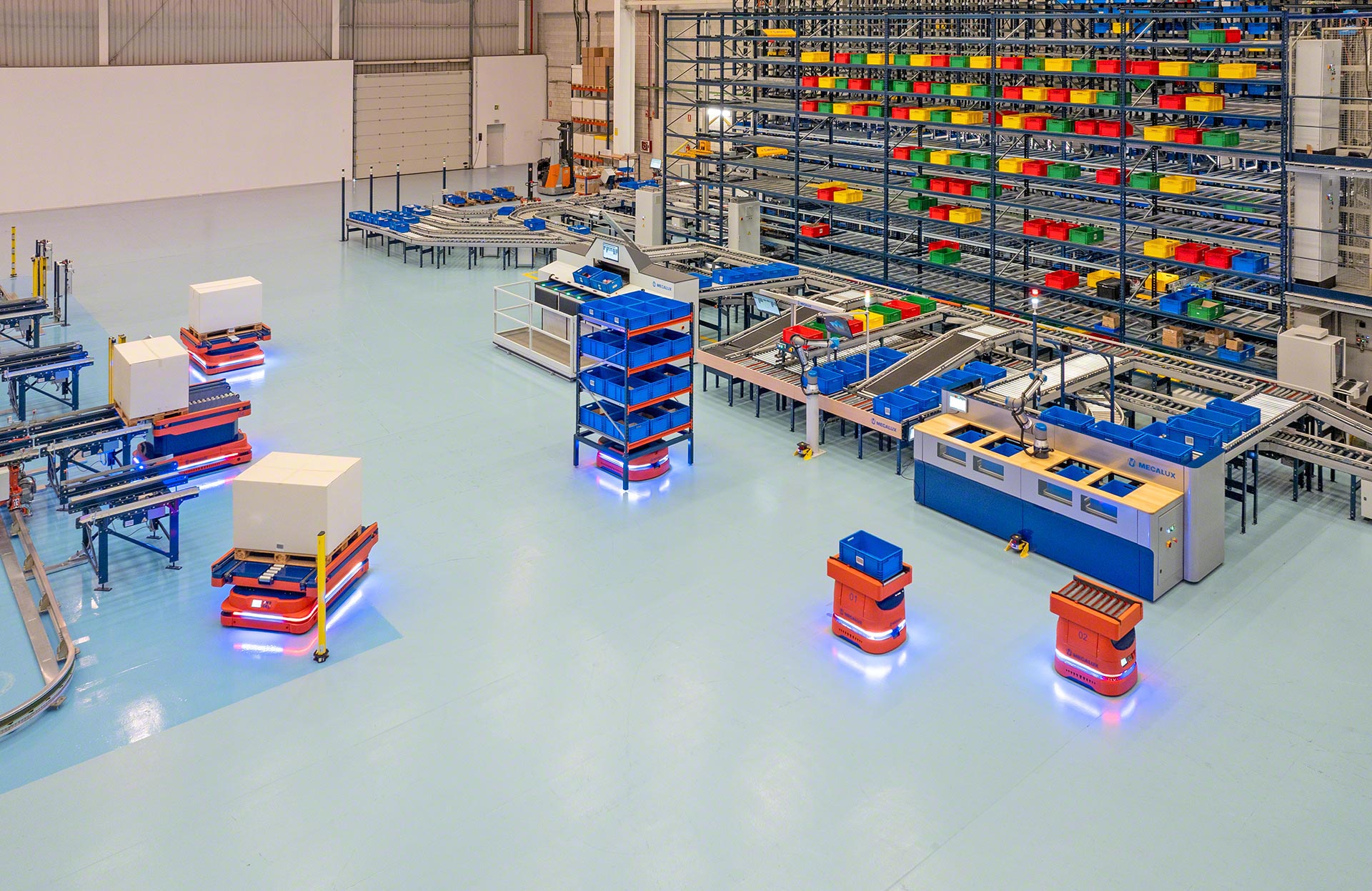 Los AMR de Mecalux son dispositivos altamente versátiles que se integran con facilidad en todo tipo de almacenes, ya que no exigen modificaciones en la infraestructura existente. Los diferentes modelos de la serie configuran un conjunto polivalente que cubre la manipulación de una amplia variedad de cargas, desde cajas, bandejas y paquetes hasta estanterías y palets. Su utilización contribuye a dinamizar y flexibilizar el flujo interno de mercancías en múltiples operaciones de intralogística, potenciando la productividad y la eficiencia del almacén.