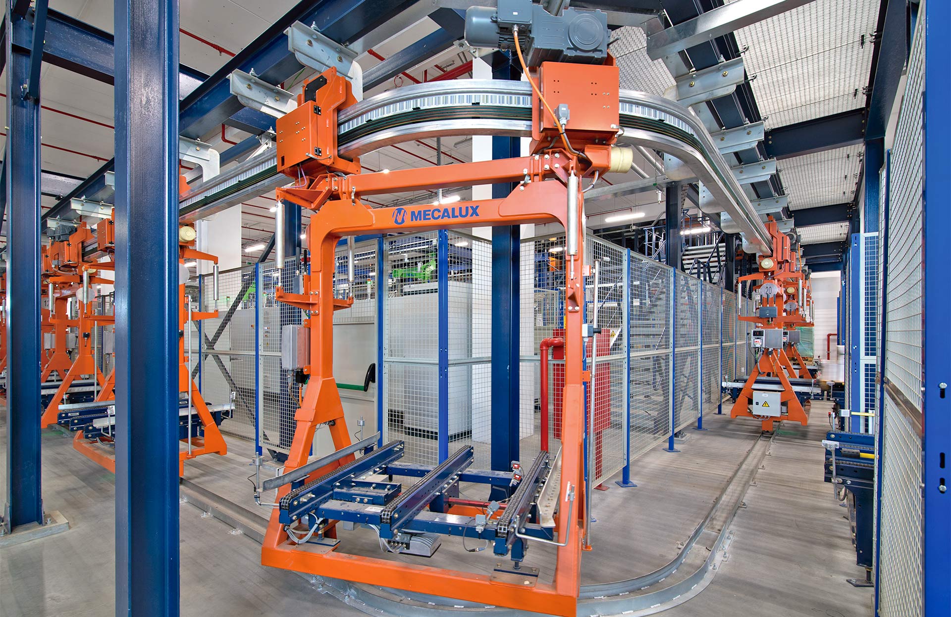 - Largas distancias: los circuitos de electrovías son una solución idónea para automatizar el transporte de cargas paletizadas entre puntos distantes.