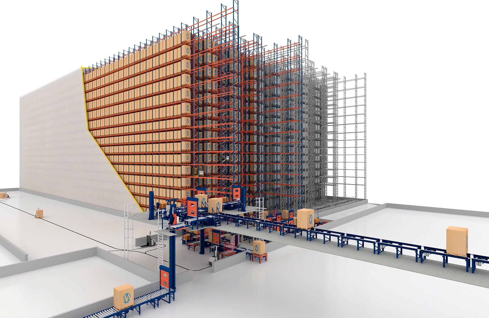 - Gran altura: configuran una solución multinivel que posibilita la elevación de palets hasta los 40 m de altura.