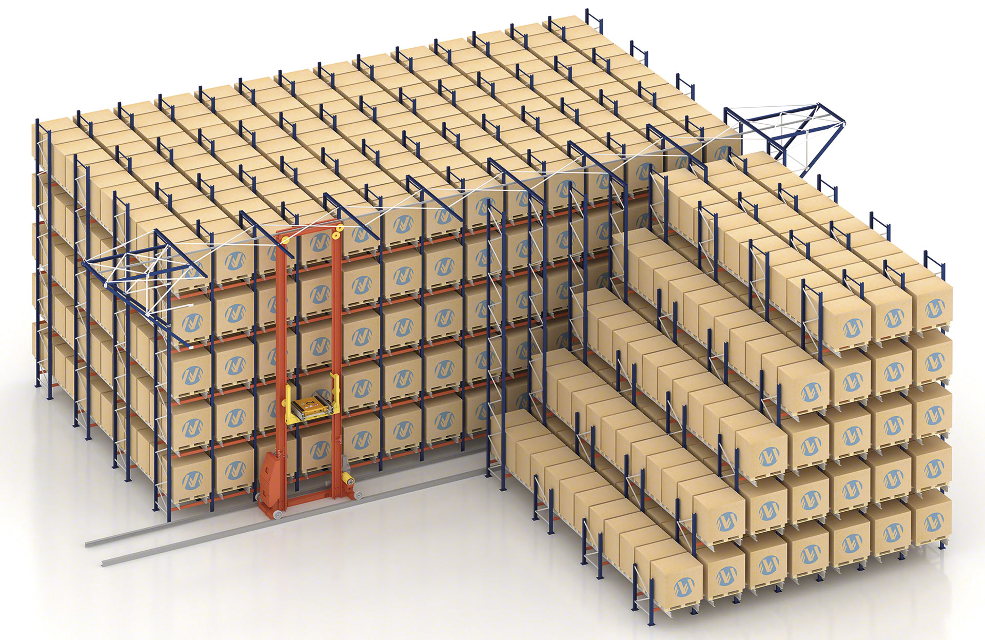 Sí, aunque no de forma directa. Para depositar un palet de dimensiones irregulares, por ejemplo, este se debe montar sobre un palet estándar compatible con el carro y la estantería que actúe como palet “esclavo”. Para almacenar cargas especiales como contenedores IBC o big-bags, se actúa de igual manera: la unidad de carga se coloca sobre un palet, que luego se deposita sobre los carriles de la estantería.