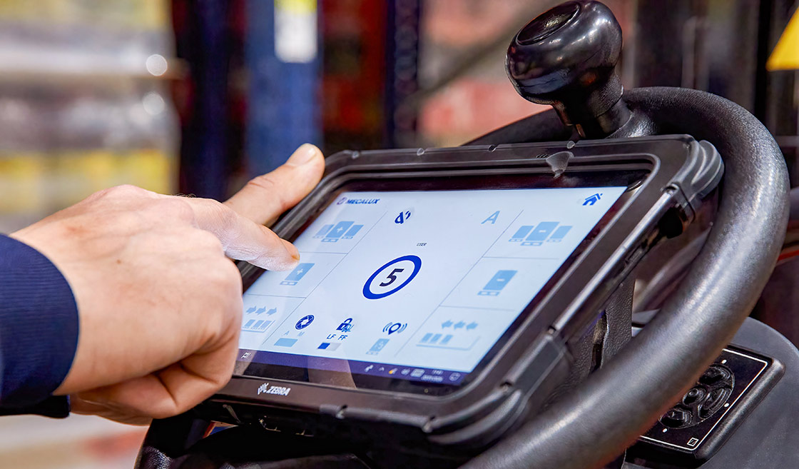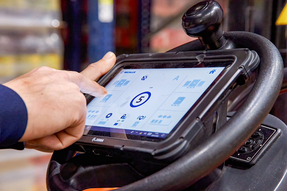 Los operarios del almacén de EOL utilizan un software de control de Mecalux en una tablet para enviar órdenes a los carros motorizados. Estos desplazan los palets de forma autónoma dentro de los canales de almacenaje, liberando al personal para que se centre en otras tareas de mayor valor añadido, como la preparación y expedición de pedidos.