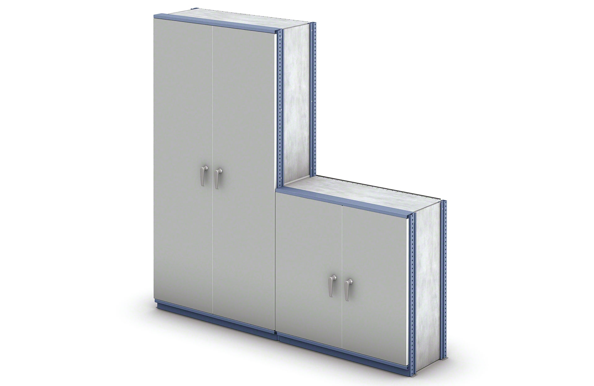 - Configurables y escalables: los paneles pueden graduarse cada 25 mm para modificar la altura de los niveles. Además, es posible ampliar la estantería con facilidad añadiendo módulos adicionales o niveles en altura.