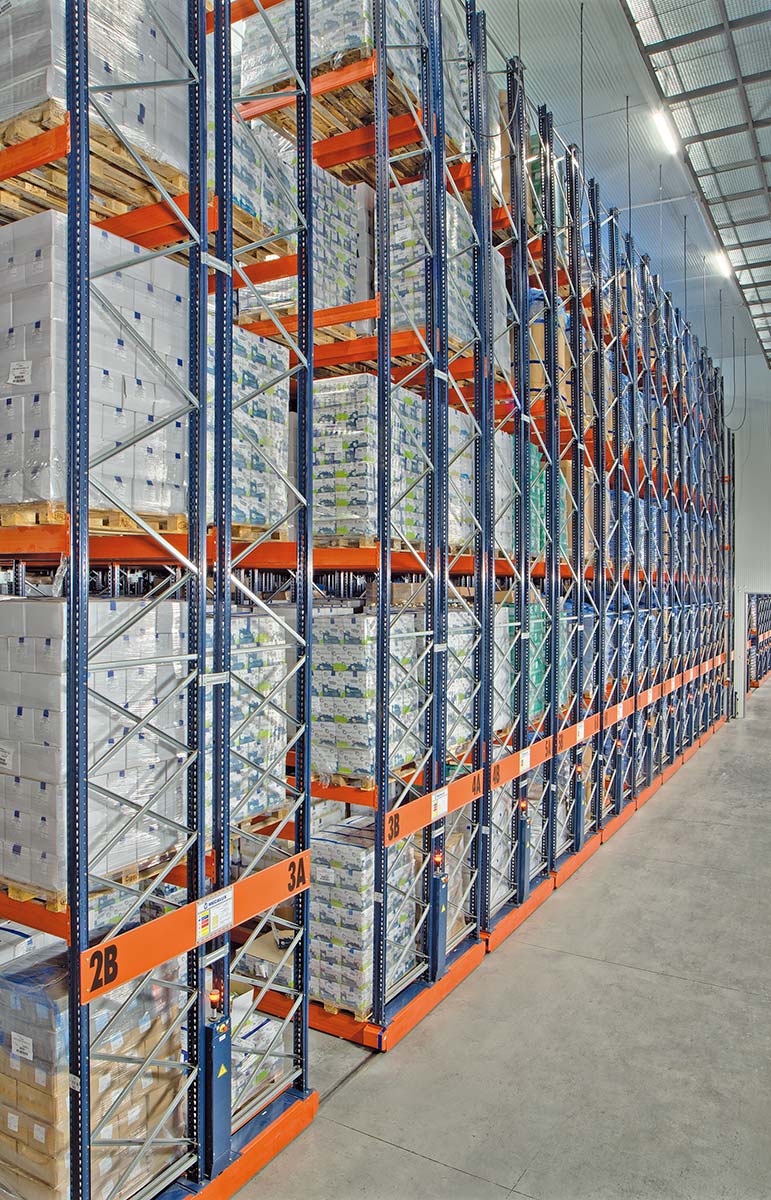 MovirackSistema de almacenamiento móvil para palets que combina la compactación con el acceso directo a cada palet y aumenta de forma significativa la capacidad del almacén.