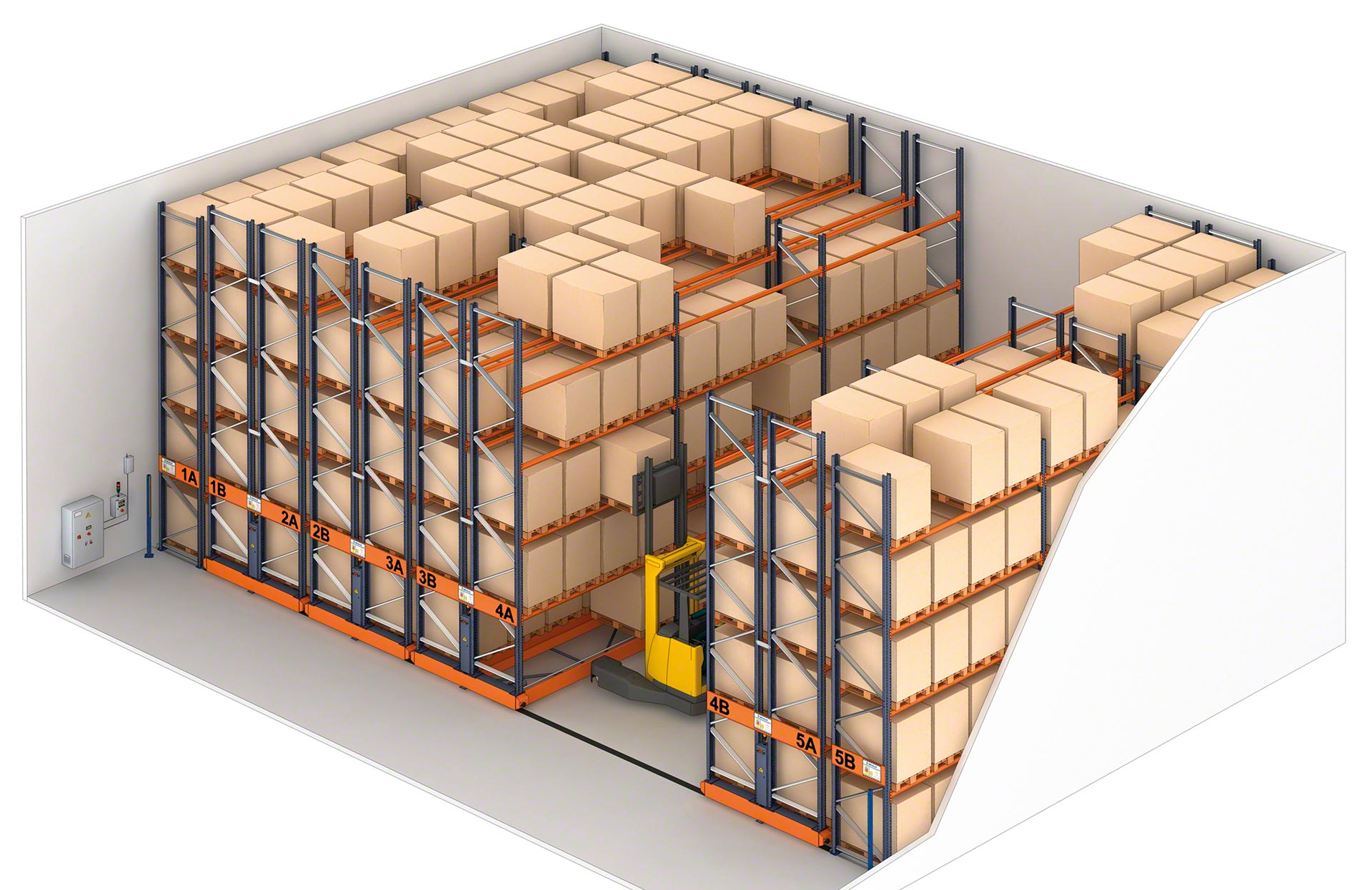 El sistema de almacenamiento móvil para palets es perfecto para aquellas empresas en las que se requiere acceso unitario a todos los palets almacenados y en las que se desea, a la vez, aprovechar al máximo la superficie disponible.