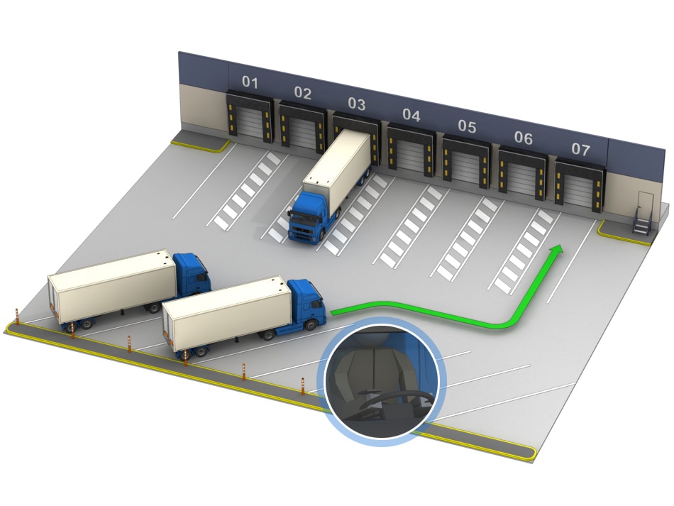 En un patio de almacén, la mayor parte del tráfico de vehículos se genera por la entrada y salida de material en los muelles. Sin embargo, actividades secundarias, como la recolección y gestión de residuos, entrega de material auxiliar, visitas y auditorías externas o determinadas operaciones de mantenimiento, también requieren que otros vehículos accedan al patio.